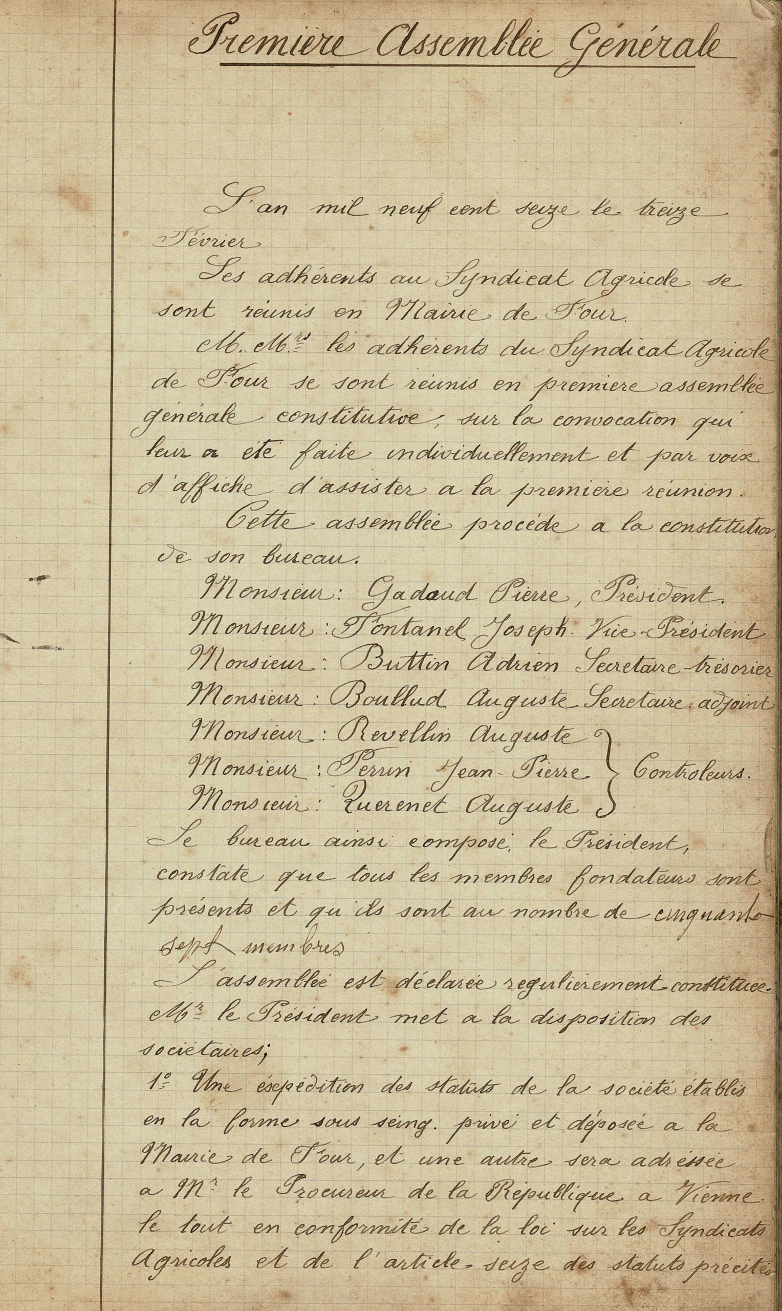 Porteur de la mémoire collective agricole de la commune, nous conservons plusieurs registres que nos ancêtres ont tenu. Des délibérations du syndicat agricole de Four pendant la 1re guerre mondiale, au prix du lait depuis fin 1800. Nos aïeux ont toujours participé activement dans les différents organismes qui se sont succédé sur la commune et nous ont légué une partie des archives.