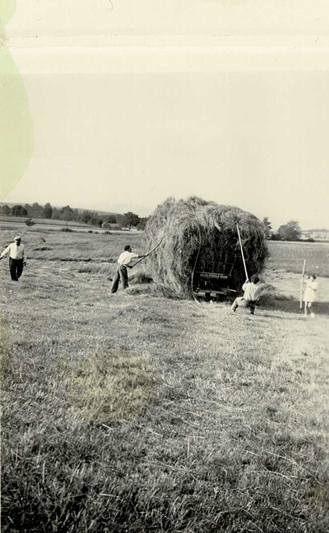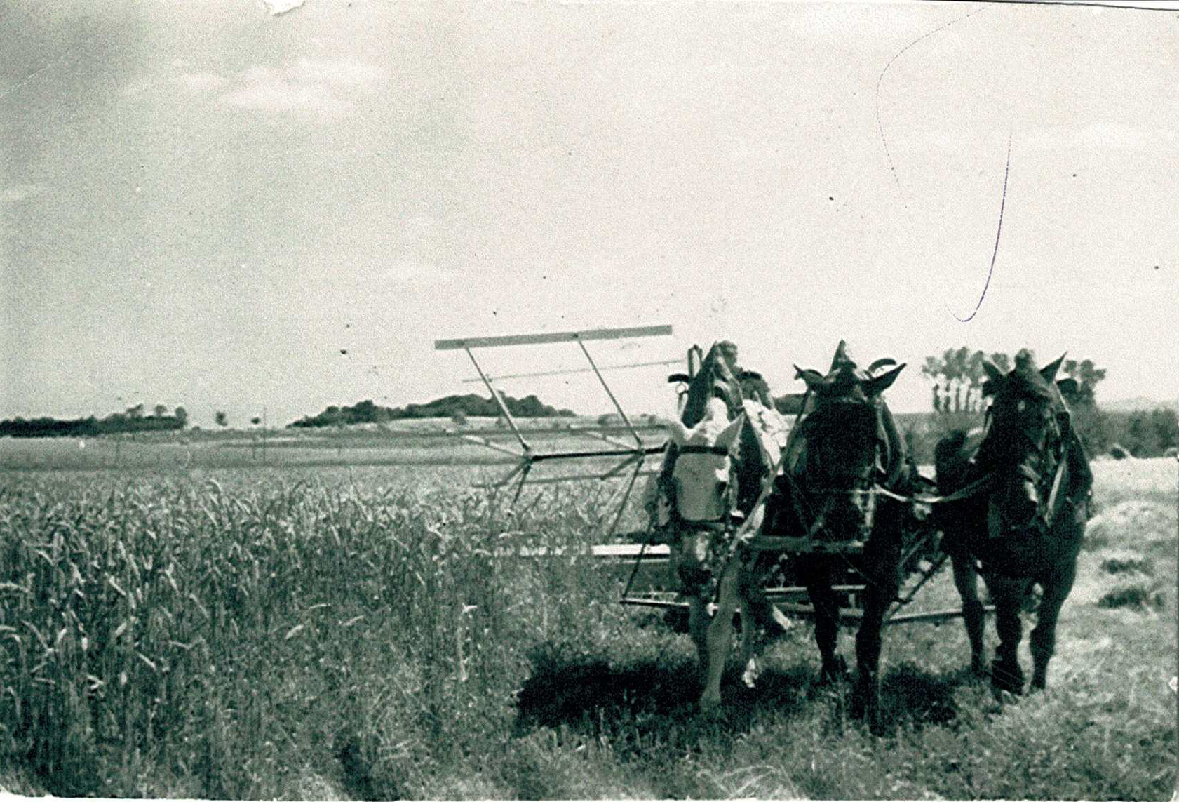 1927 : Anthelme, petit fils de Joseph achète avec 2 voisins la 1 ère moissonneuse lieuse. Machine tirée par des chevaux qui remplace le travail à la faux.